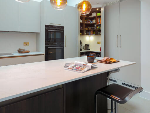 The fix: We recommend at least 120cm between kitchen worktops for comfortable circulation. In a smaller kitchen, 100cm can work, but more is always better. Our designers consider how the space will be used to ensure appliances can open fully and traffic can flow smoothly.
