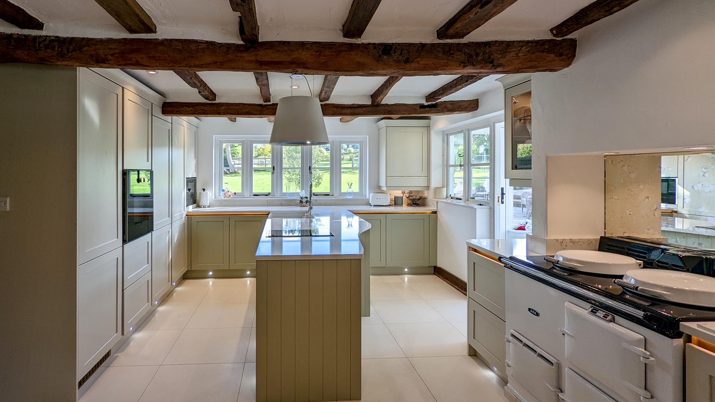 One of our favourite ways to bring a country kitchen into the modern era is to blend traditional cabinetry with contemporary appliances and lighting. A sleek induction hob or integrated fridge can sit seamlessly within a shaker kitchen, proof that functionality doesn’t have to compromise style.