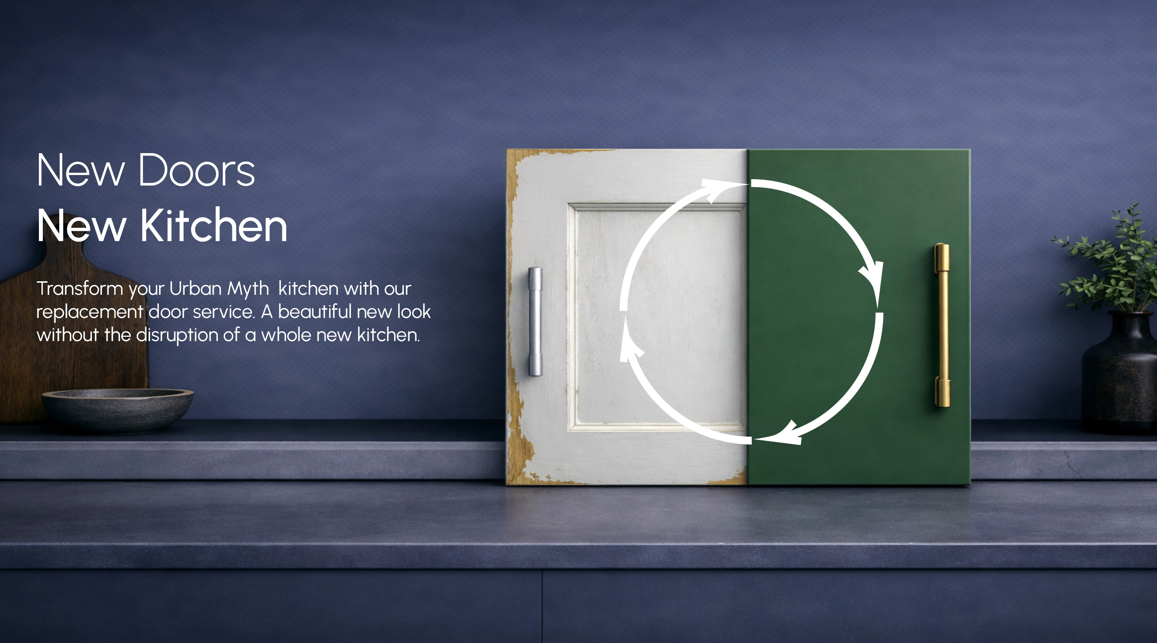 Our kitchen refurbishment and replacement door service is available exclusively for kitchens originally designed and installed by Urban Myth. This allows us to guarantee compatibility, quality, and finish, as all components are manufactured to our original specifications. Unfortunately, we’re unable to offer replacement doors or refurbishment services for kitchens supplied by other manufacturers. If you’re unsure whether your kitchen was installed by Urban Myth, our team will be happy to help confirm this before progressing.