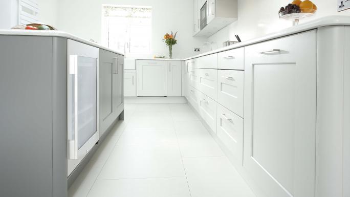 This Foundation Light grey and Stepping Stone grey Shaker kitchen is the perfect example, our client wanted some traditional features but also liked a clean, streamlined design, they also wanted to include some contemporary appliances and this design combines their wish list perfectly.