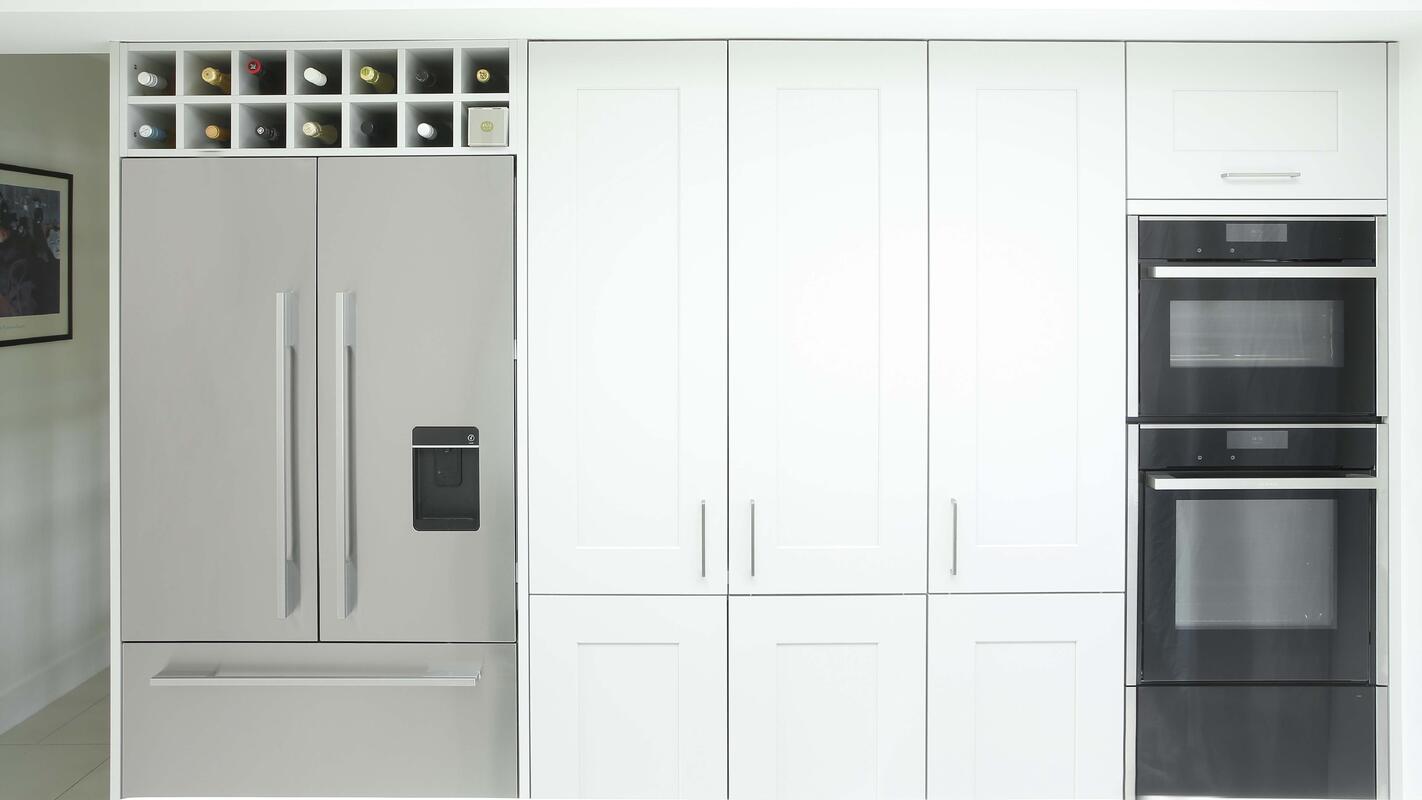 A modern update on a Shaker style kitchen with the convenience of the latest appliances.