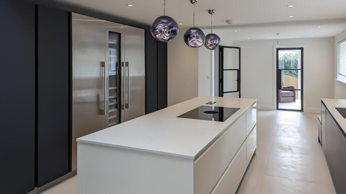 The Siemens Studio Line appliances use the latest cutting edge technology and sit perfectly in this space creating a kitchen that not only performs but looks stunning too.