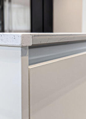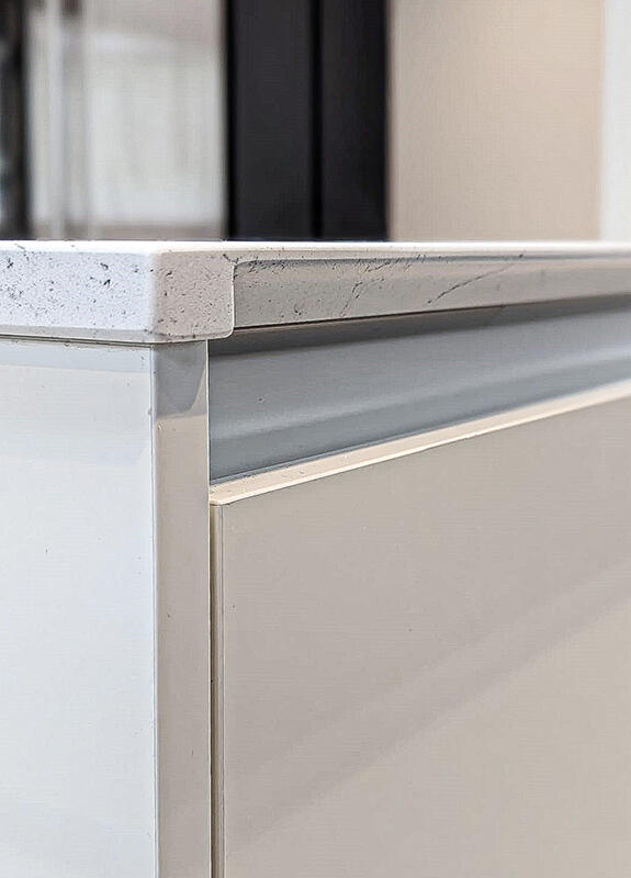 If you‘re looking for a kitchen with clean, minimal lines but like a pop of colour then this could be the kitchen for you. Our customer wanted a contemporary kitchen with clean, crisp lines. Storage is concealed behind pocket doors to give a symetrical and streamlined design.