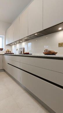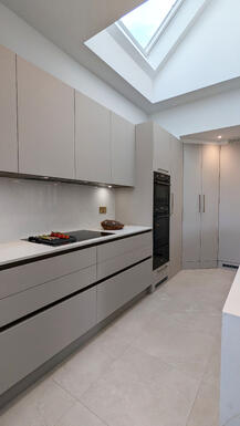 Sophisticated Simplicity Matt Cashmere Kitchen in Buckhurst Hill - A Beautifully Designed Neutral-Toned Space.