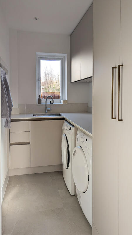 Urban Myth’s latest kitchen installation in Buckhurst Hill is a masterclass in understated luxury and intelligent design. Finished in Matt Cashmere, the combination of handleless and handled tall units creates a contemporary yet timeless aesthetic, offering a seamless blend of style and practicality.