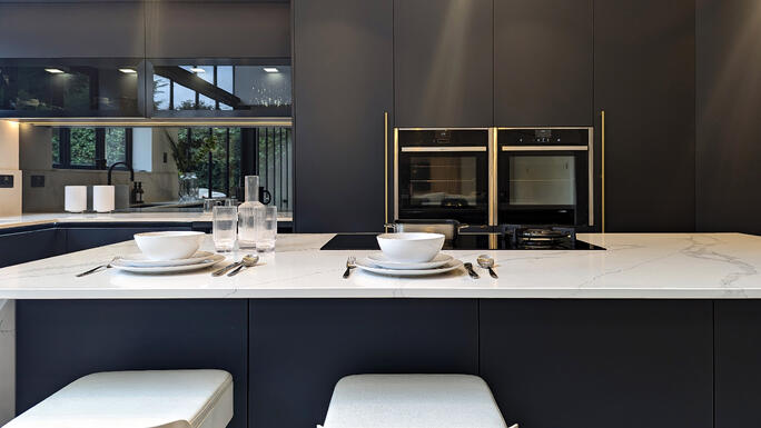 The cool and sophisticated exterior of this kitchen cleverly conceals an abundance of storage features that make family life that little bit easier.