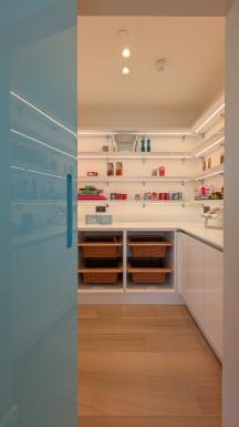 Behind this pared-back façade, clever hidden elements elevate the practicality of the space. Two discreet “secret” doors are fully integrated within the cabinetry, one leading to a walk-in pantry, the other to a utility and boot room, ensuring that everyday functionality remains effortlessly tucked away.