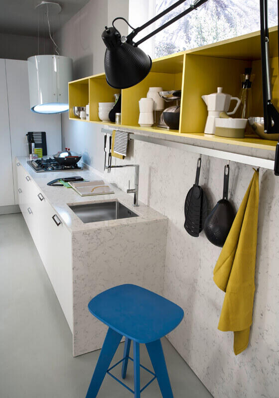 Easily add a pop of colour to your white kitchen with accessories in bright hues. From bar stools to utensils, it can be an affordable way to inject some life and can be easily changeable if you get bored!