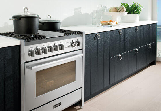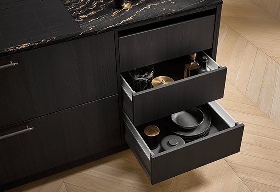 Dark and dramatic tones paired with metallic brights can make your kitchen truly shine.