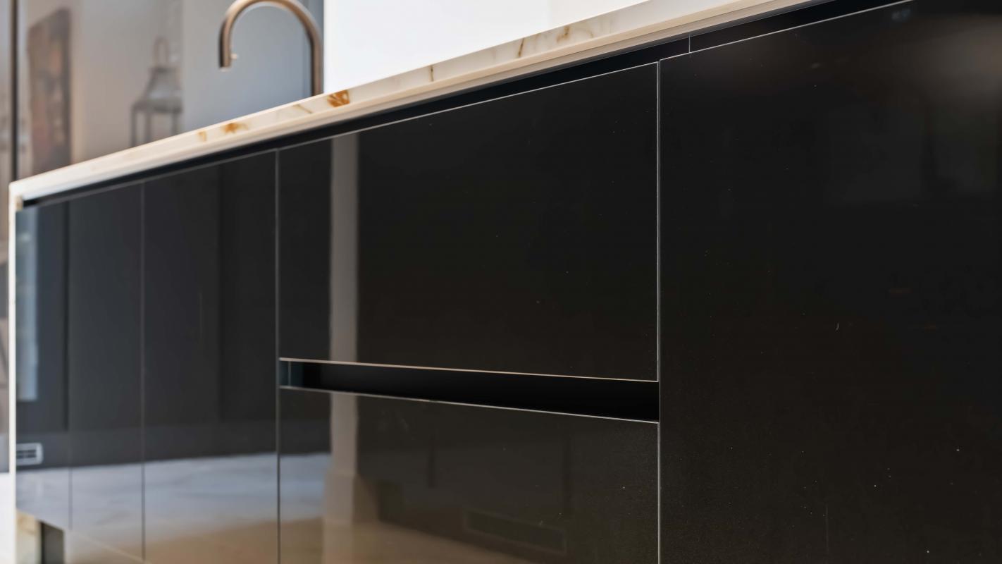 Living the high life! High ceilings in this period conversion have been used to dramatic effect with our Black Gloss Kitchen