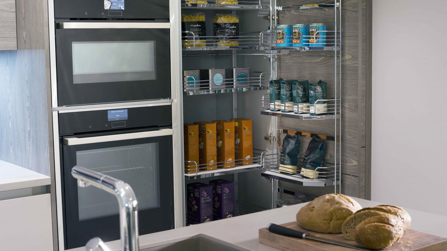 To ensure there is plenty of storage and space is maximised we have included a number of clever solutions. The tandem larder makes sure all your provisions are visible and accessible, whilst the pan drawers can hold all the necessary cooking equipment as well as crockery and larger food items.