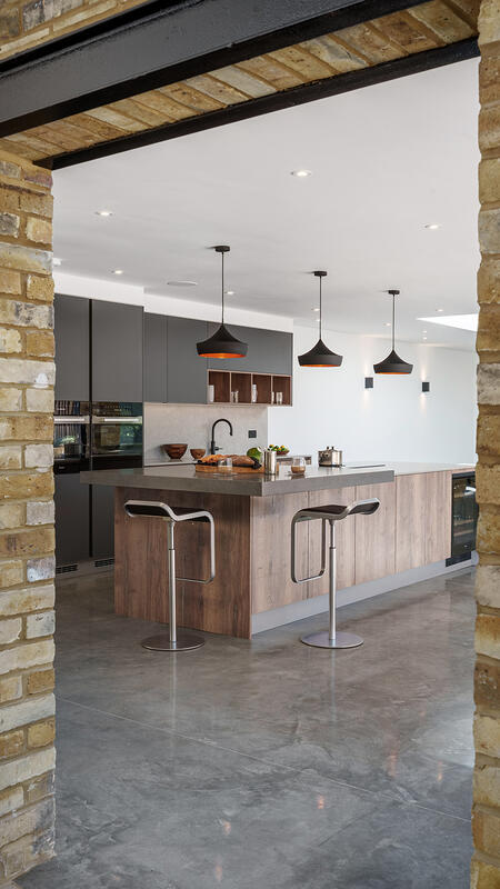 A converted car workshop in Waltham Cross has been transformed into this stunning home with landscaped garden and bespoke designer kitchen from Urban Myth.