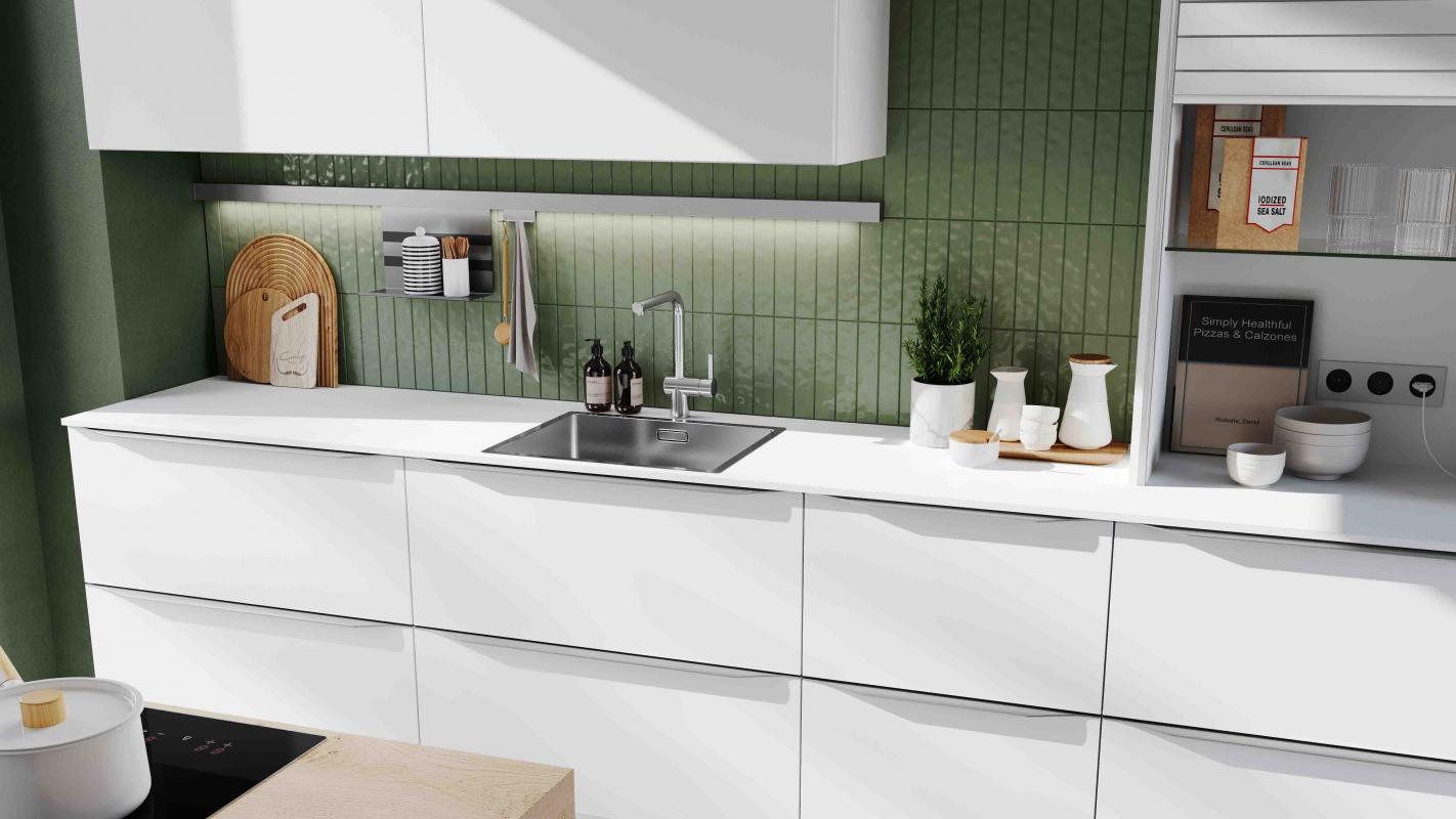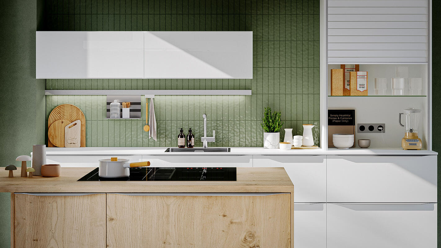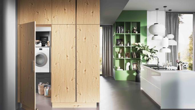 A real gem that combines all the refinements of a modern kitchen. Intelligent technology, design and sustainability. The noble oak shade shows the link to nature and is a wonderful counterpart to the crystal white fronts.